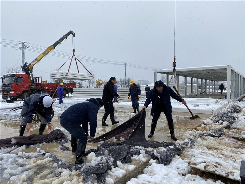 2月7日(農(nóng)歷正月初七),冬雪紛紛、寒風(fēng)瑟瑟,惡劣的天氣并未阻擋隔離點項目各參建單位的激情和干勁。中午12時40許,監(jiān)理單位在現(xiàn)場開展巡查,鰲峰建設(shè)在項目部組織施工會商工作。下午,國資集團(tuán)黨員突擊隊、志愿服務(wù)隊主動請“戰(zhàn)”,步履匆匆赴現(xiàn)場鏟雪除冰。副區(qū)長王劍赴現(xiàn)場督查指導(dǎo)工作并對項目進(jìn)度表示肯定。