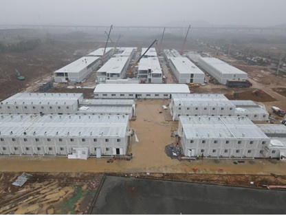 目前,準(zhǔn)備區(qū)188套折疊房、緩沖區(qū)活動板房、污水處理點(diǎn)用房已安裝完成,隔離區(qū)打包房安裝已完成80%,室內(nèi)水電、家具、電器、南邊綠化工程、室外強(qiáng)電工程、污雨水管道修補(bǔ)、部分道路也在緊張施工中。