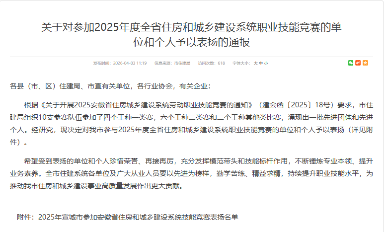 安徽鰲峰建設(shè)集團有限公司工人代表蔡克五,憑借扎實的專業(yè)功底與精湛的實操技藝,代表宣城市住房和城鄉(xiāng)建設(shè)局參加2025年度全省住房和城鄉(xiāng)建設(shè)系統(tǒng)職業(yè)技能競賽,榮獲個人優(yōu)秀獎。